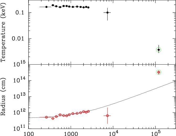 radius of the soft thermal component. The last point (circled in green)