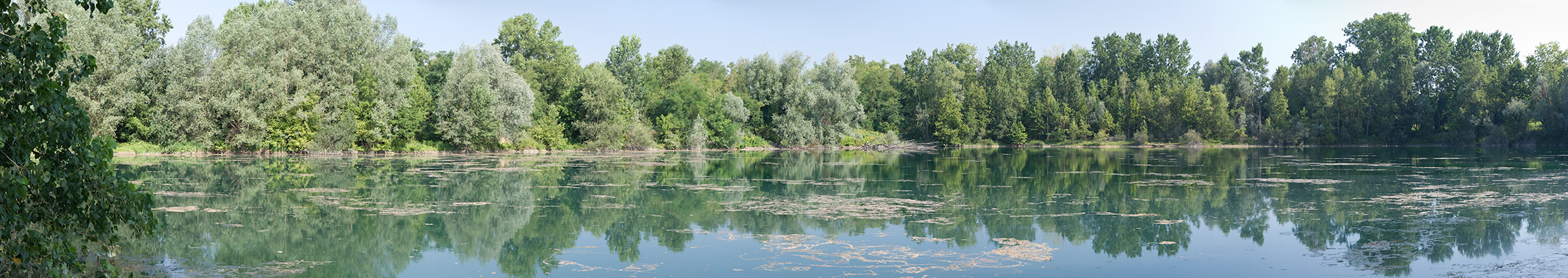 Veduta del Lago dei Riflessi, vecchia cava rinaturalizzata a fianco del fiume Serio nel comune di Ricengo.